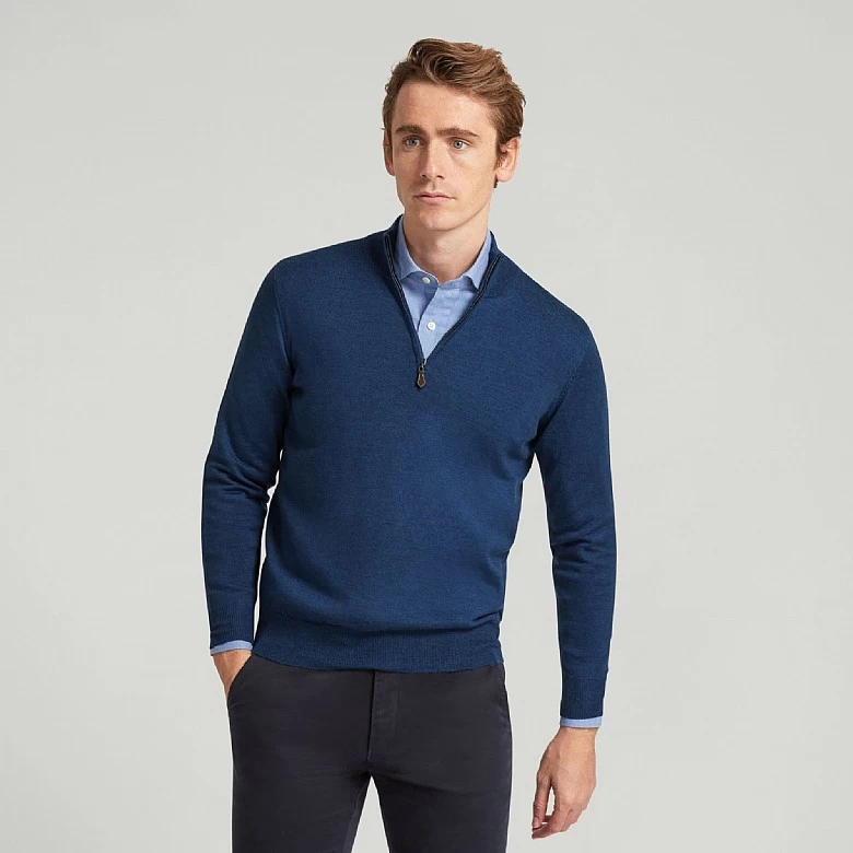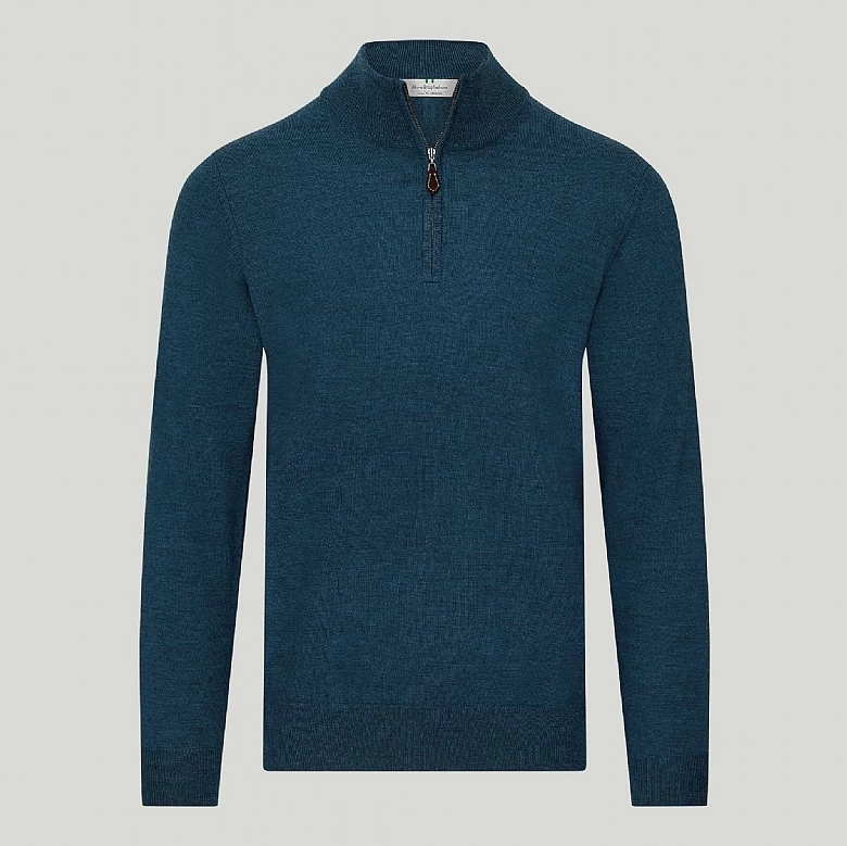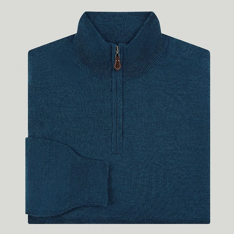 Introducing our Tartan Green Zip Neck Merino Jumper, an epitome of refined craftsmanship. This jumper, distinguished by its classic shape, is fully fashioned to ensure a tailored silhouette. Crafted from premium merino wool, its naturally breathable qualities promise optimal comfort across diverse settings. The zip neck feature adds a modern touch while ensuring easy wear. Each detail, meticulously finished by hand, showcases our commitment to superior quality. Further, the ribbed cuff and hem augment both form and function. Beyond its sartorial appeal, this jumper underscores our dedication to sustainability, being made from merino wool that is naturally biodegradable. A perfect blend of timeless elegance and eco-conscious fashion for the discerning professional.