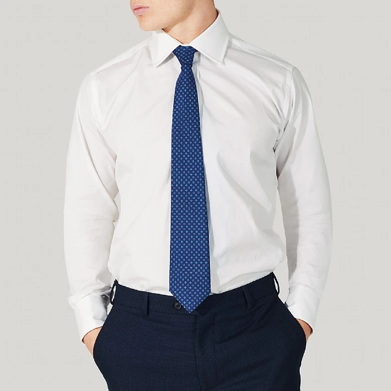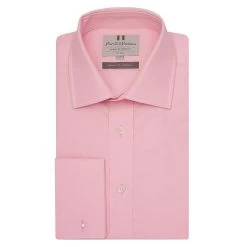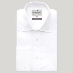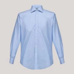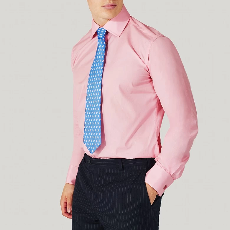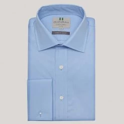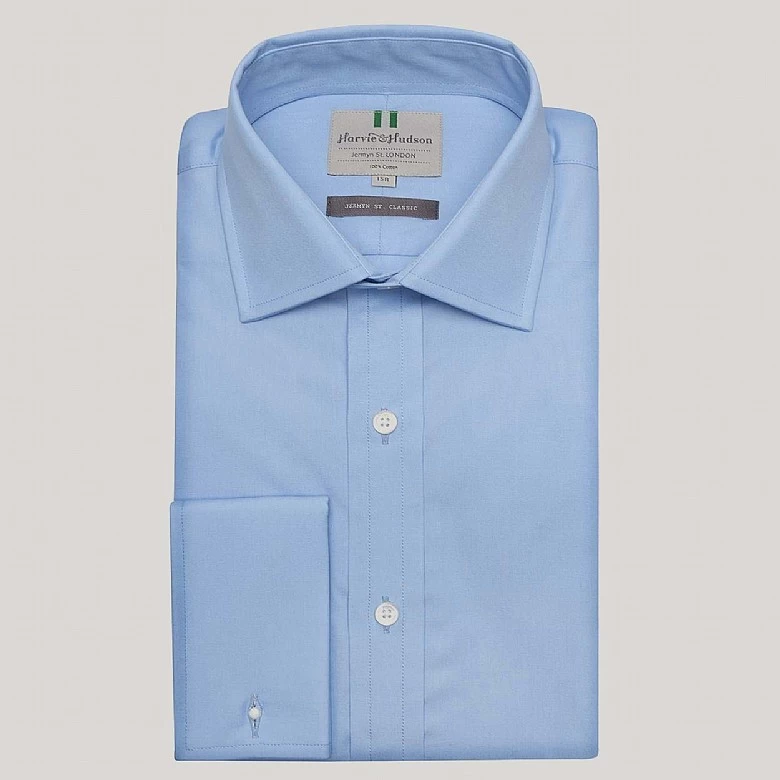 Made from luxury two-fold 100 cotton poplin, our classic fit plain blue shirt is crafted with the finest quality lining providing a crisp collar and impeccable double cuffs. Our signature Mother of Pearl buttons provide the perfect finishing touch on this Azure Shirt. Poplin Shirts are our most popular range of shirts, perfect for the office or a night out on the town, a plain shirt can never do you wrong. These selections of shirts are available in a White, Cream, Pink and the traditional plain sky blue shirt, known commonly as the Azure. Pair with a Harvie and Hudson suit.