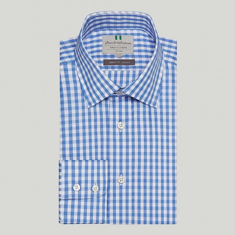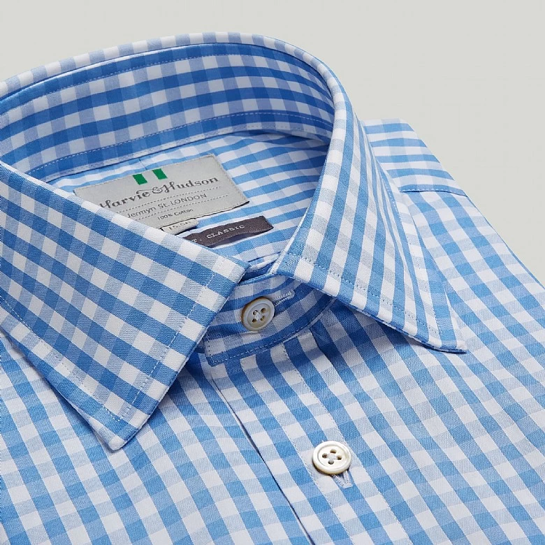 An old favourite returns! Back for Spring 23 is our ever-popular large gingham check in blue. Cut from cool, crisp cotton poplin, this shirt will lift any Summer outfit. Classic fit and 2 button single cuff. This Blue Gingham Check Button Cuff Classic Fit Shirt forms a part of our latest collection and is perfect for your next occasion. Our new selection of luxury clothing and accessories is limited edition and designed with you in mind. Update your wardrobe with this unique piece completed in the intricate Harvie and Hudson finish.