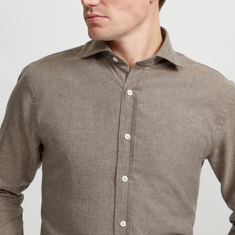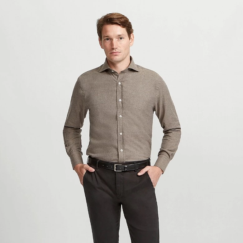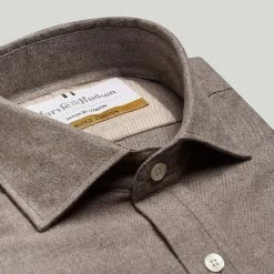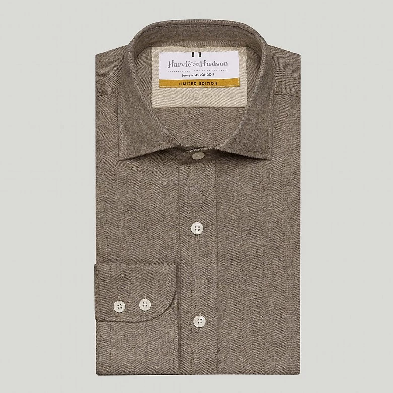 This brown herringbone cotton casual shirt in button cuffs is a great one to wear in a classic shape. Forming a part of our latest collection and perfect for your next occasion. Our new selection of luxury clothing and accessories is limited edition and designed with you in mind. Update your wardrobe with this unique piece completed in the intricate Harvie and Hudson finish.