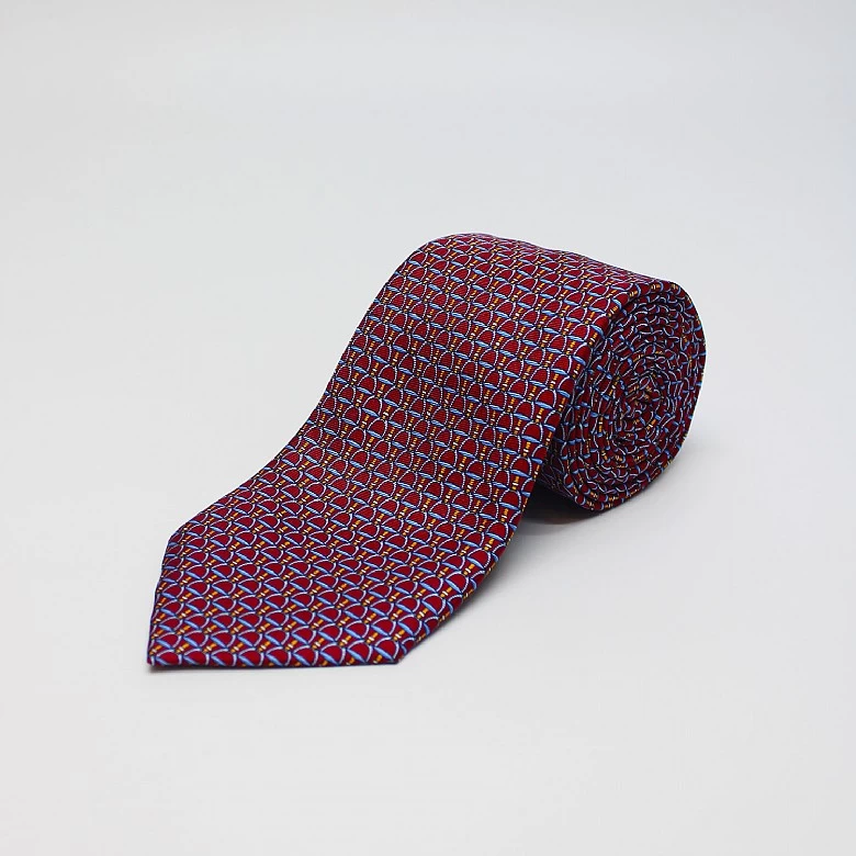 This Burgundy Stirrups Printed Silk Tie forms a part of our latest collection and perfect for your next occasion. Our new selection of luxury clothing and accessories is limited edition and designed with you in mind. Update your wardrobe with this unique piece completed in the intricate Harvie and Hudson finish.