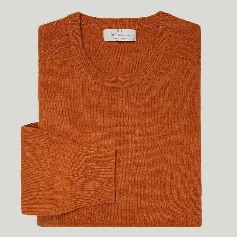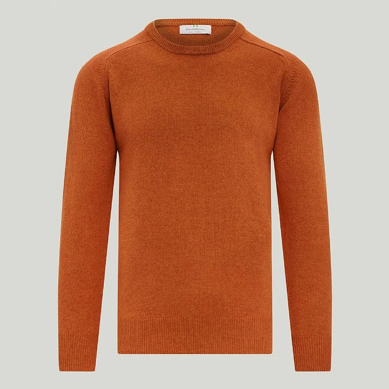 Step into a world of warmth and sophistication with our Burnt Orange Crewneck Lambswool Jumper. Exuding a radiant hue reminiscent of autumn leaves and sunsets, this jumper is a must-have for those who appreciate timeless fashion. Its classic shape effortlessly complements various styles, making it a versatile addition to any wardrobe.