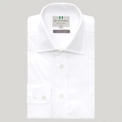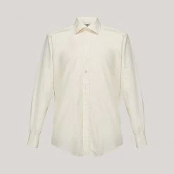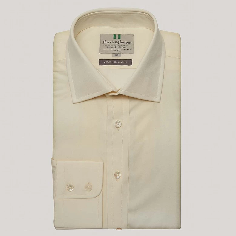 Made from luxury two-fold 100 cotton poplin, this classic fit cream shirt is crafted with the finest quality lining providing a crisp collar and impeccable button cuffs. Our signature Mother of Pearl buttons provide the perfect finishing touch. Pair with a Harvie and Hudson suit.