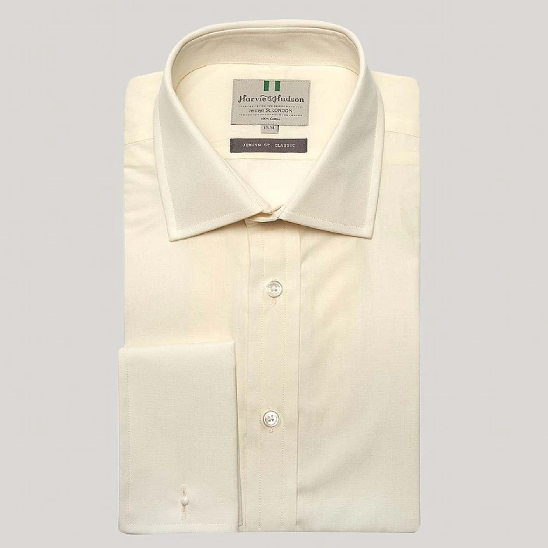 Made from luxury two-fold 100 cotton poplin, our classic fit cream shirt is crafted with the finest quality lining providing a crisp collar and impeccable double cuffs . Our signature Mother of Pearl buttons provide the perfect finishing touch to our white poplin shirt. Pair with a Harvie and Hudson suit.