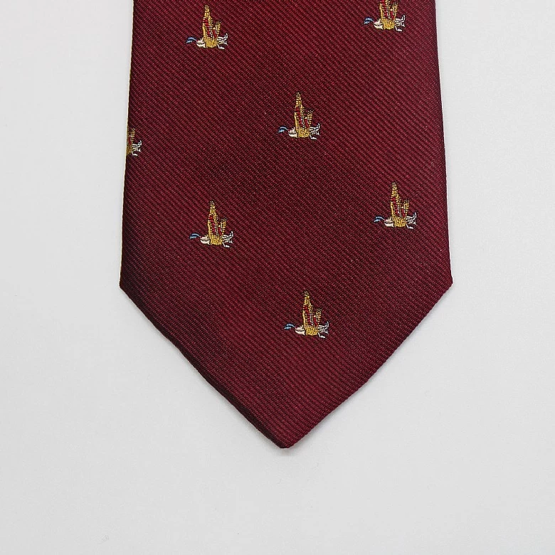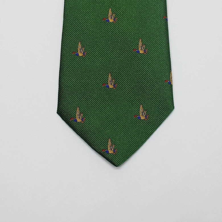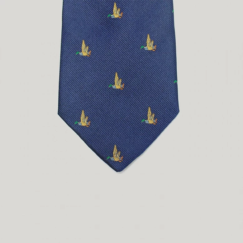 Accentuate your style with the Green Ducks Woven Silk Tie. Woven meticulously from 100% Italian Silk, this tie displays an enchanting pattern of ducks gracefully set against a verdant green backdrop. The intricate design is enhanced by the premium wool lining, ensuring a luxurious feel and impeccable drape. Perfect for those who appreciate a harmonious blend of nature and elegance, this tie captures the essence of sophistication. Whether for business or a special occasion, the Green Ducks Woven Silk Tie is a timeless piece that effortlessly elevates any ensemble.