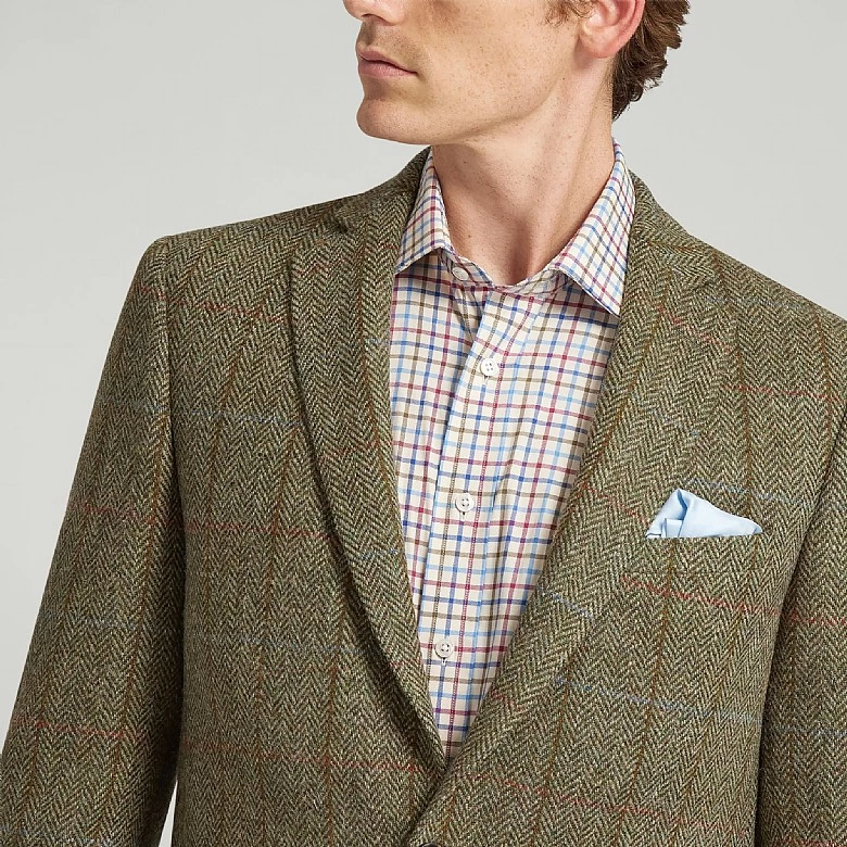 Dive into a world of tradition, quality, and style with our Green Harris Tweed Check Jacket. Renowned for its durability and timeless appeal, Harris Tweed has been the choice of discerning gentlemen for generations, and this jacket exemplifies its enduring allure.