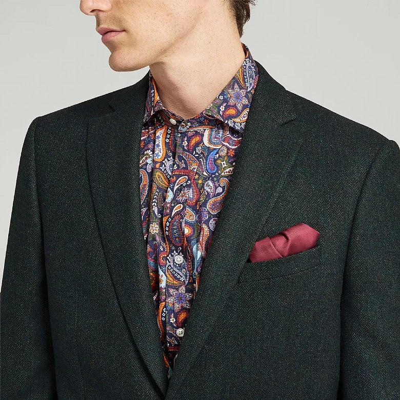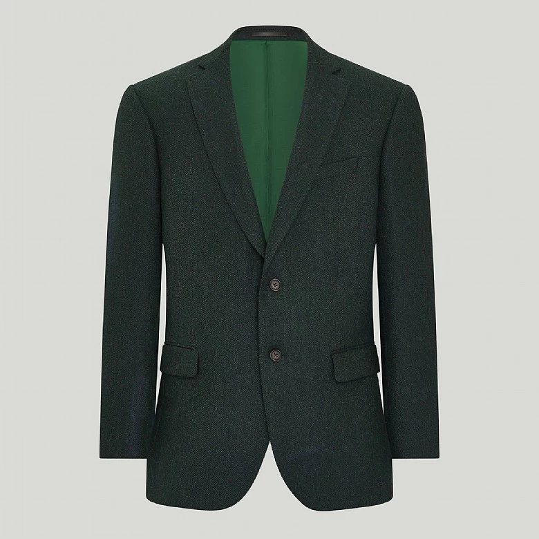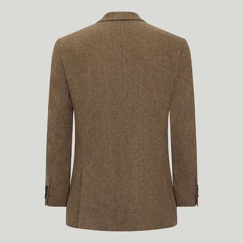 The distinctive herringbone pattern, woven into the luxurious lambswool, exudes a subtle charm, presenting both warmth and an air of distinction. Its classic cut showcases a silhouette that transcends fleeting trends, promising a fit that is always in vogue and universally becoming.