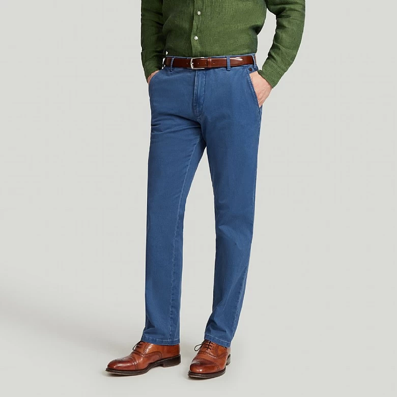 This Indigo Blue Meyer Cotton Classic Trouser forms a part of our latest collection and is perfect for your next occasion. Our new selection of luxury clothing and accessories is limited edition and designed with you in mind. Update your wardrobe with this unique piece completed in the intricate Harvie and Hudson finish.