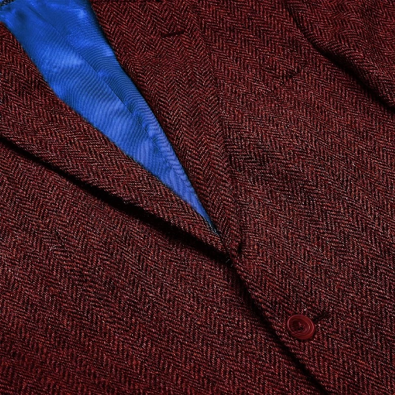 For the man who always looks his best, we provide our Loganberry Herringbone Tweed Check Jacket. This jacket was made with care and attention to detail, and it has twin vents to increase airflow and mobility. The buttonholes in the sleeves are functional, and the piano facing gives it a bit of class. The inner lining and contrasting stitching highlight impeccable craftsmanship, and the two buttons on the front assure a fitted fit. Embrace the traditional style and beauty of the buttonhole on the left lapel. This eye-catching accessory expertly combines elegance and boldness, taking your look to the next level.