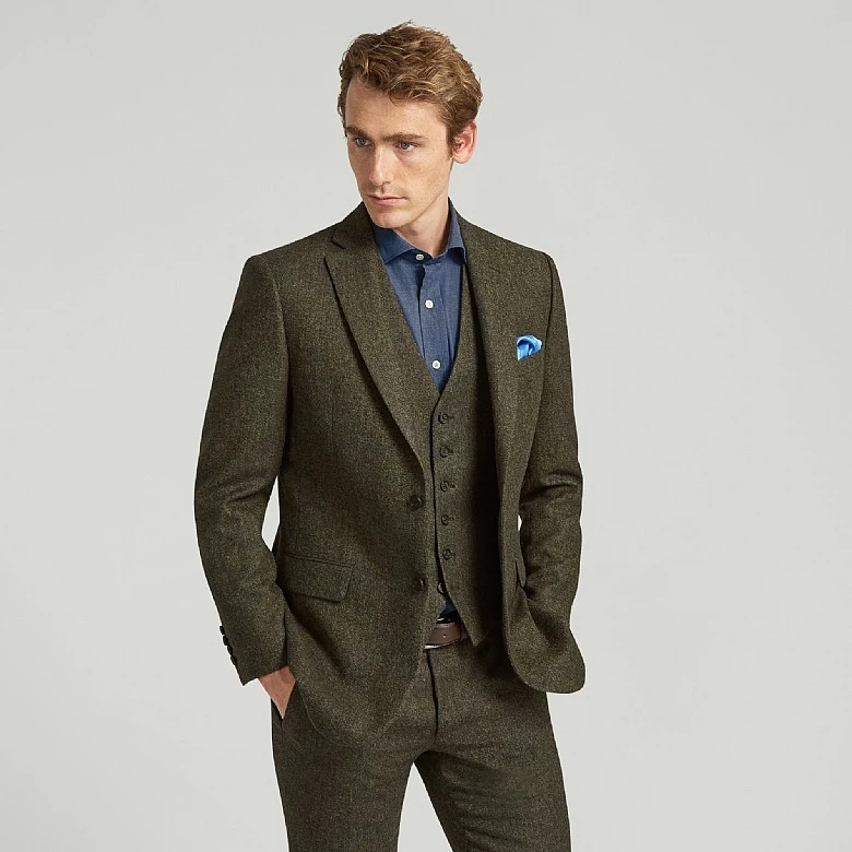 For understated elegance, our Moss Green Donegal Jacket is the quintessential choice, blending tradition with contemporary style.