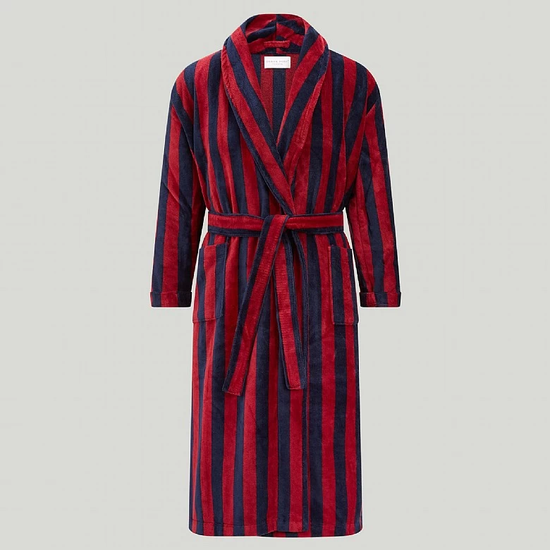 This Navy and Red Stripe Toweling Gown forms a part of our latest collection and perfect for your next occasion. Our new selection of luxury clothing and accessories is limited edition and designed with you in mind. Update your wardrobe with this unique piece completed in the intricate Harvie and Hudson finish.