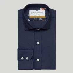 This navy cotton casual shirt in button cuffs is a great one to wear in a classic shape. Forming a part of our latest collection and perfect for your next occasion. Our new selection of luxury clothing and accessories is limited edition and designed with you in mind. Update your wardrobe with this unique piece completed in the intricate Harvie and Hudson finish.