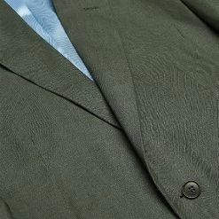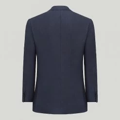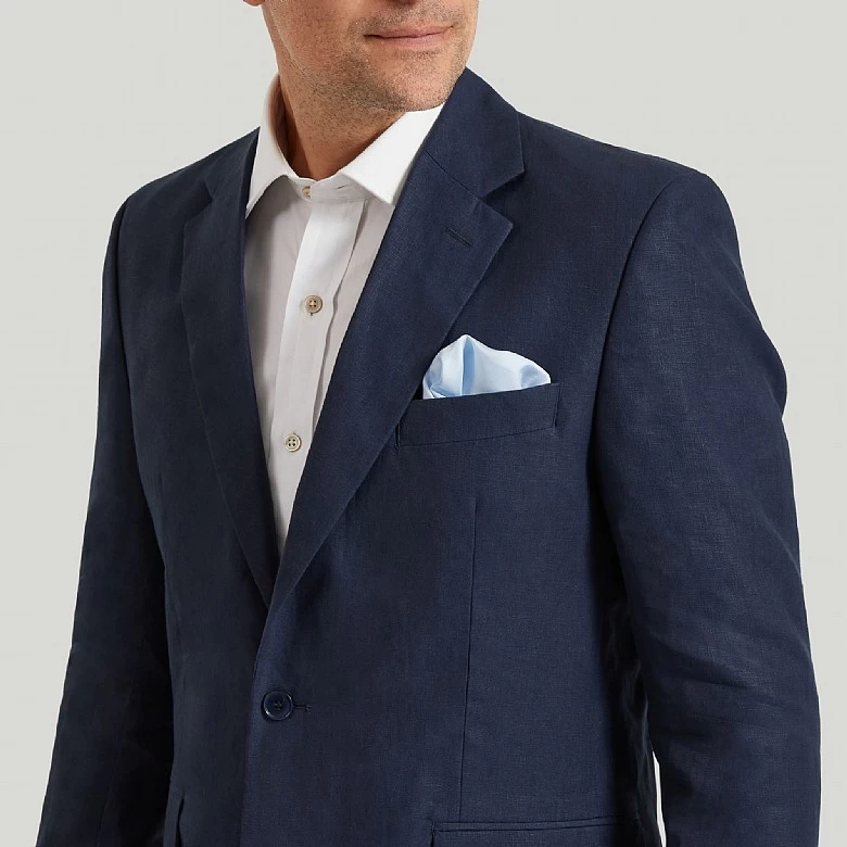 Our navy plain linen jacket is a chic and adaptable addition to your wardrobe. The piano front and twin vents on this jacket are stunning examples of fine craftsmanship. Working buttonholes on the sleeves offer a refined touch, and the 2-button front oozes classic elegance. It offers a chic and contemporary edge thanks to the contrast inner lining and stitching. It is embellished with a buttonhole on the left lapel and mixes fashion with utility. This jacket is comfortable and breathable thanks to its high-quality linen construction. The Navy Plain Linen Jacket is a must-have for any sophisticated man looking for timeless elegance thanks to its classic cut.