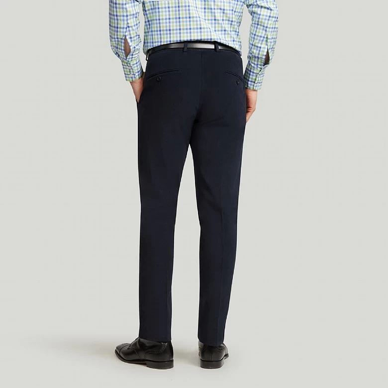 Experience the perfect blend of comfort and sophistication with the Navy Smart Cotton Unfinished Trousers. These flat fronted trousers, crafted from premium cotton, promise a breathable and luxurious feel. Designed with a classic cut, they flatter every silhouette and are equipped with a zip fly for convenience and a sleek finish. Whether you’re heading to the office or an evening event, these trousers ensure you step out with poise and elegance. Enhance your wardrobe with a staple that effortlessly marries style and functionality.