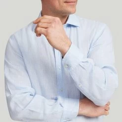 Stay cool in the sun this year with our new super soft holiday shirt in pre-washed linen. Our summer casual shirts are cut with an easy fit for comfort in the heat. This Navy blue is ideal for matching with summer outfits and darker colours, shorts, chinos or jeans and comes with a softer collar and single button cuffs with contrast linings. This Navy Washed Linen Shirt forms a part of our latest collection and is perfect for your next occasion. Our new selection of luxury clothing and accessories is limited edition and designed with you in mind. Update your wardrobe with this unique piece completed in the intricate Harvie and Hudson finish.
