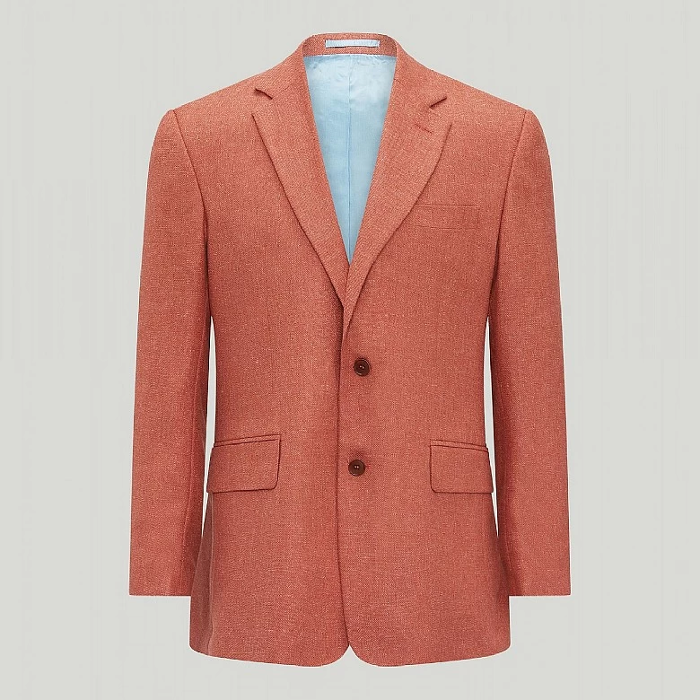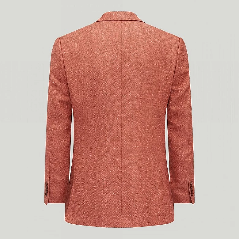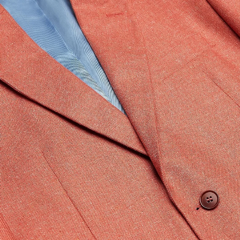 We present our magnificent Orange Silk and Wool Jacket, a fashion statement with unmatched style. The jacket’s twin vents and piano facing are examples of its exquisite construction. A touch of elegance is added by the working sleeve buttonholes, and the two-button front emanates classic charm. A stunning visual difference is created by the inner lining and stitching contrasts. It has a buttonhole on the left lapel and is both fashionable and practical. Any occasion will be flattering because to the timeless cut. This superb silk and wool jacket will elevate your wardrobe and exude elegance and good taste.