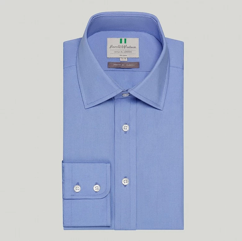 The best blue shirt for Summer. Cut from cool, crisp cotton poplin, this Mediterranean blue fabric is the ideal partner for linen jackets and summer outfits. Classic fit and 2 button single cuff. This Riviera Blue Plain Button Cuff Classic Fit Shirt forms a part of our latest collection and is perfect for your next occasion. Our new selection of luxury clothing and accessories is limited edition and designed with you in mind. Update your wardrobe with this unique piece completed in the intricate Harvie and Hudson finish.