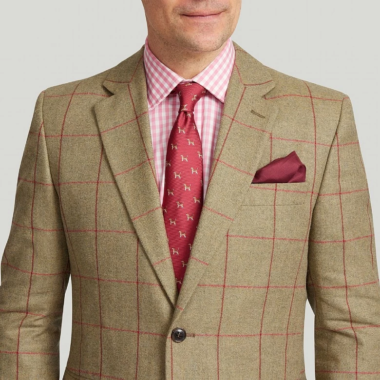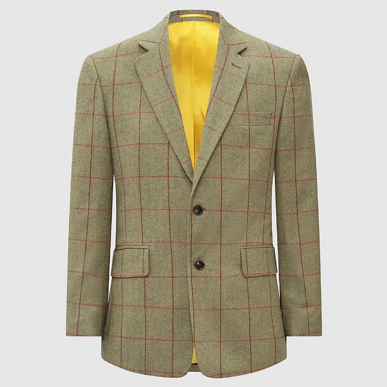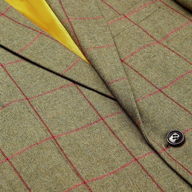 Introducing our Sage Green Tweed Check Jacket, the ideal fusion of class and classic design. This jacket, which was painstakingly made with attention to detail, has twin vents for better comfort and movement, and the piano facing gives it a classy feel. Working buttonholes on the sleeves allow for customised changes, and the two-button front provides a custom fit. This jacket exhibits great craftsmanship with contrast stitching and an inner lining. Accept the traditional cut that effortlessly combines style and adaptability, complete with a buttonhole on the left lapel. Take your wardrobe to the next level with this bold item.