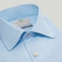 Our popular mini-gingham check returns for Spring 23 in crisp, cotton poplin. The pale sky blue check is small enough to take a tie, so it is easy to wear as an office shirt, but will also look sharp open-necked with chinos and linen jacket. Slim fit with 2 button single cuff. This Sky Mini Check Button Cuff Slim Fit Shirt forms a part of our latest collection and is perfect for your next occasion. Our new selection of luxury clothing and accessories is limited edition and designed with you in mind. Update your wardrobe with this unique piece completed in the intricate Harvie and Hudson finish.