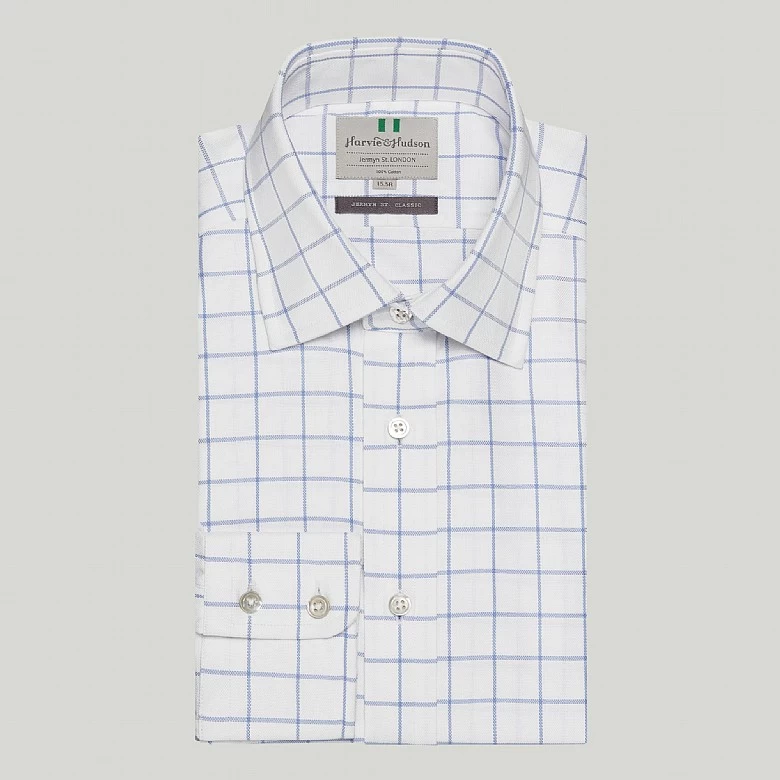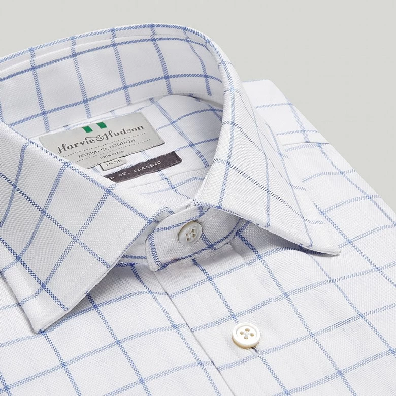 New for Spring 23 is this lightweight Oxford weave cotton windowpane check in blue. Cool to wear, it will look great open-necked with jeans or chinos. Classic fit with 2 button single cuff. This Sky Windowpane Check Button Cuff Classic Fit Shirt forms a part of our latest collection and is perfect for your next occasion. Our new selection of luxury clothing and accessories is limited edition and designed with you in mind. Update your wardrobe with this unique piece completed in the intricate Harvie and Hudson finish.