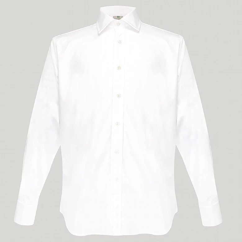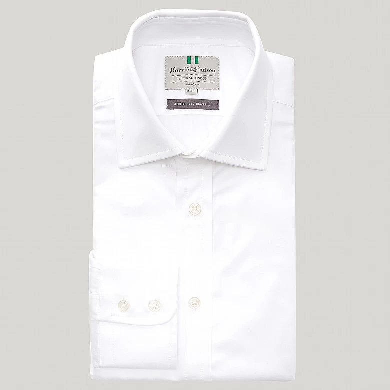 A sartorial favourite that every gentlemen should own, the White Fine twill is perfect for adding instant polish to even your most sophisticated looks. We render our button cuff shirts from 100% two fold cotton poplin and cut in the traditional Harvie and Hudson pattern. Crafted with a sharp Kent collar and luxurious mother of pearl buttons finished in an easy to wear button cuff.