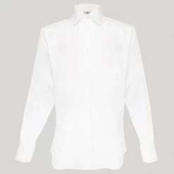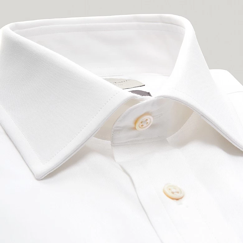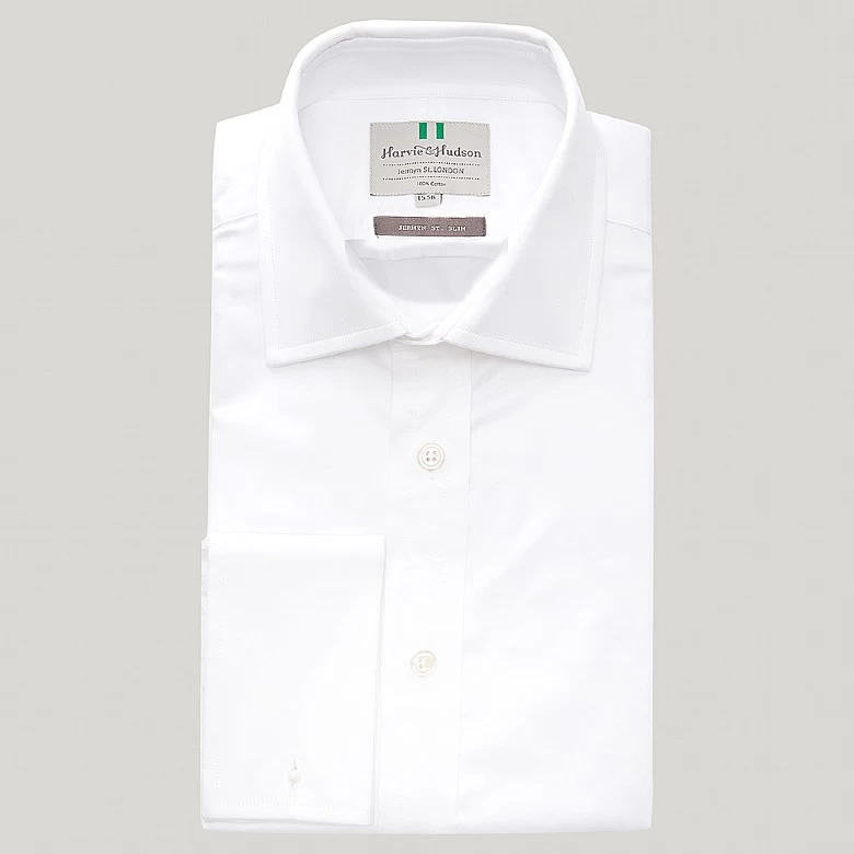 For an immaculate impression, complete your sartorial look with our tailored slim fit shirt in a crisp white twill. Crafted from 100% two fold cotton poplin in the traditional Harvie and Hudson slim fit pattern, it is expertly rendered with mother of pearl buttons, a sharp collar, high quality cotton lining and a sophisticated double cuff. Bring it to life with a bold tie and darker suiting. Pair with a Harvie and Hudson suit.