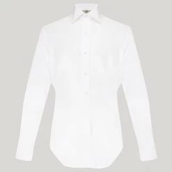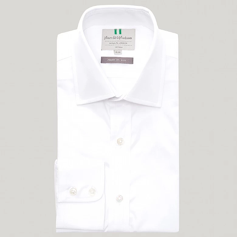 You asked, we listened: the much awaited button cuff slim fit shirt is finally here, and we brought it in a timeless white hue. The White Cuff Shirt is crafted from 100% two fold cotton poplin in the traditional Harvie and Hudson classic pattern, it is expertly rendered with mother of pearl buttons, a sharp collar, high quality cotton lining and a sophisticated two button cuff. Bring it to life with a bold tie and darker suiting. We began crafting luxury shirts on 1949 and have been dedicated to refined shirtmaking ever since. We only source the finest material and cut them in the traditional Harvie and Hudson patterns that span through generations of careful revisions and precise improvements for a fit that is as comfortable as it is flattering. Pair with a Harvie and Hudson suit.