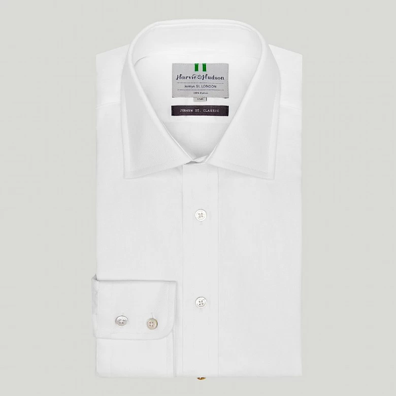 Experience timeless refinement with the White Royal Oxford Button Cuff Classic Fit Shirt by Harvie and Hudson. Crafted from the finest 2-fold 100% Egyptian Cotton, this shirt embodies the perfect balance of comfort and enduring style.